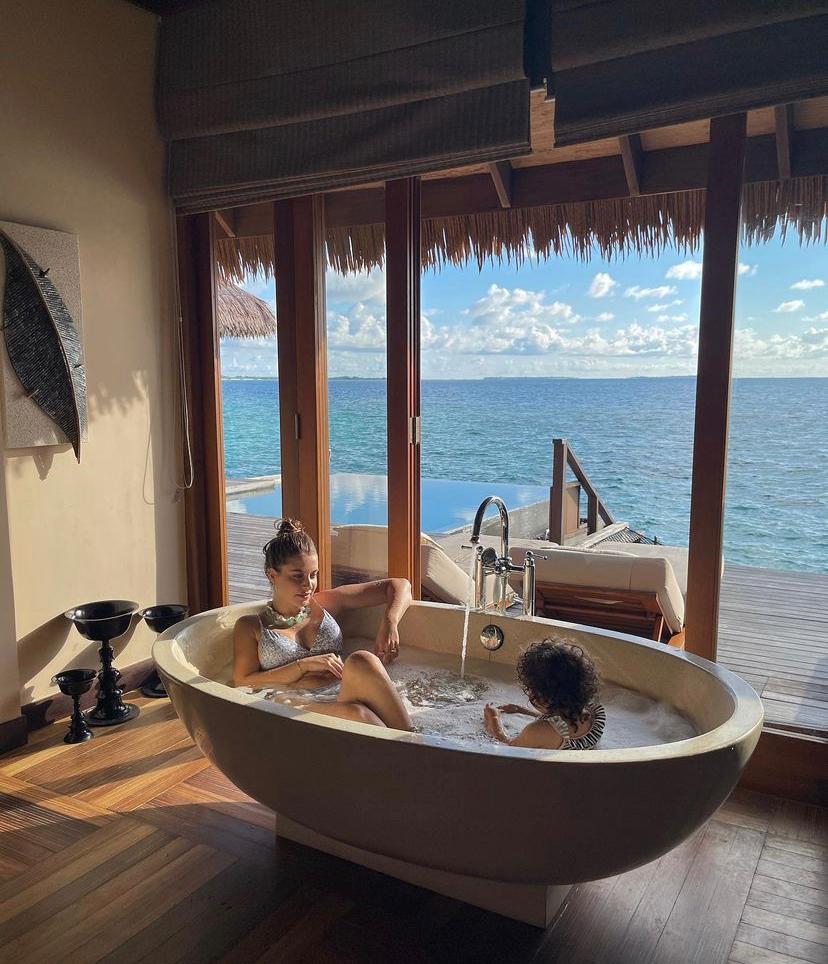 Erçel, Gamze Erçel, daha sonra kızı Mavi’yle küvet banyosu yaptı.