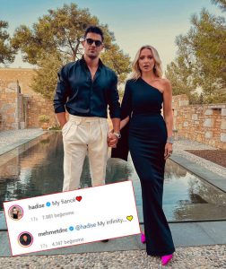 Geçtiğimiz hafta sevgilisine evlilik teklifi eden Dinçerler, kardeşi Tuğba Dinçerler’in düğününde takım elbisesi ile verdiği pozu yayınladı. Mehmet Dinçerler’e, “Evet” yanıtını veren Hadise ise sevgilisinin gönderisine kayıtsız kalmadı. İş insanının ailesiyle de tanışan ünlü şarkıcı, Dinçerler’in paylaşımına, “Nişanlım!” yorumunu yaptı.